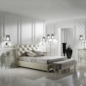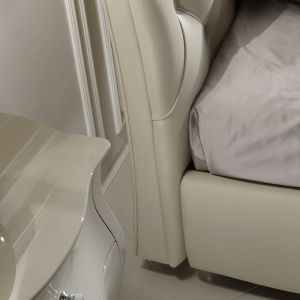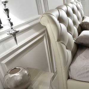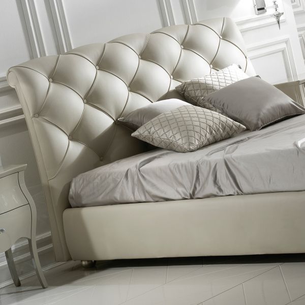 The Italian High End Leather Button Upholstered Bed, a truly fabulous addition to any glamorous modern bedroom. A wooden structure padded in different densities, superbly button upholstered and upholstered in the finest quality Ivory Italian leather, whic