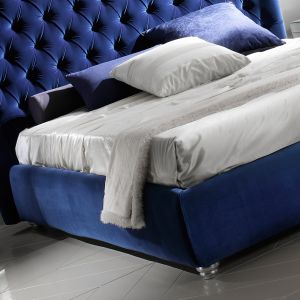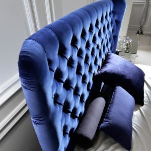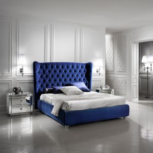 The High End Italian Velvet Winged Designer Bed, with the romantic curves of its statement tall headboard being the primary focus to this fabulous design. Creating a remarkable feature. The headboard and base is padded in differing densities, then superbl