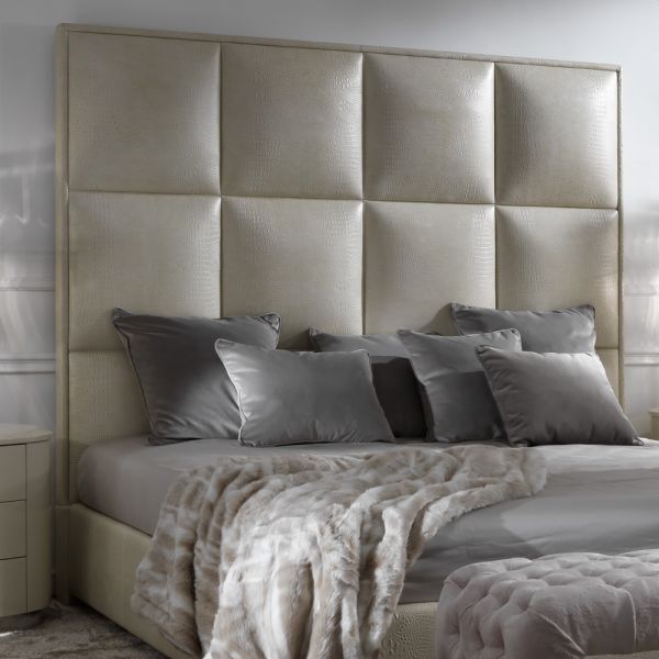 The Italian Alligator Embossed Pattern Leather Designer Bed is a striking contemporary addition to any bedroom. Made by the finest Italian furniture makers. The statement clean lines of the headboard detail provide a grand addition to any interior design.