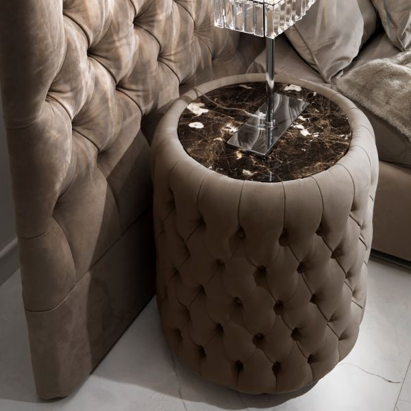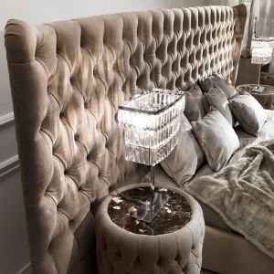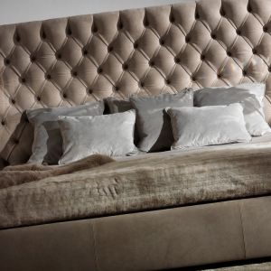 The Button Upholstered Leather Italian Bed with Extended Headboard is a true statement addition to any bedroom, every inch a prominent feature of outstanding style and design. Made by the finest Italian furniture makers. The striking dimensions of the hea
