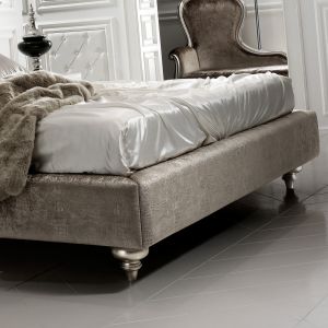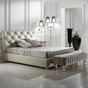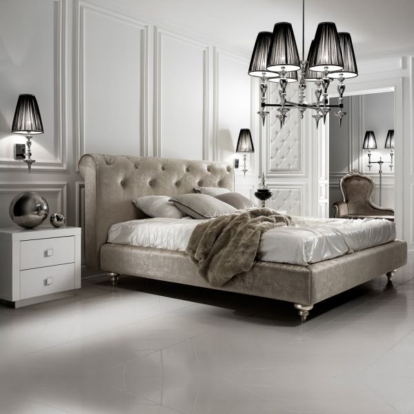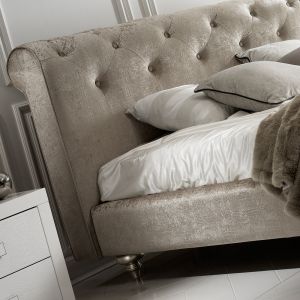 The Designer Button Upholstered Velvet Italian Bed is a striking statement for any bedroom setting. The contemporary rolled headboard top and low styling is the primary focus to this fabulous design. Superbly button upholstered in the finest beige alligat