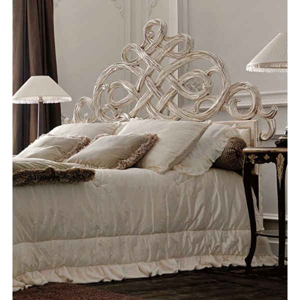 The Opulent Italian Carved Silver Ornate Bed, truly stunning in any setting. Shown here in an antique silver painted finish to the ornate and intricate statement carvings of the headboard.