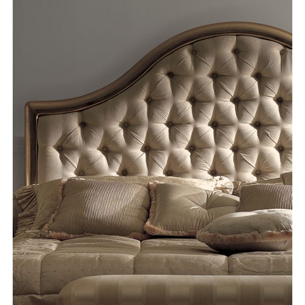 Classic Gold Designer Button Upholstered Bed. Shown here in a rich antiqued gold painted frame and button upholstered with a high quality mink velvet