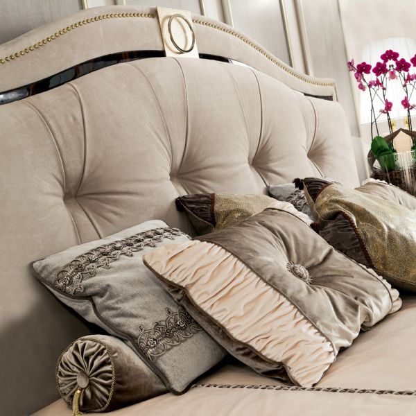 Italian Designer Nubuck Art Deco Bed. This glamorous Italian designer Art Deco bed is shown here finished in a beautiful mink Nubuck. The elegant Art Deco details are captivating, creating a truly sumptuous atmosphere. A touch of grace and style for any b