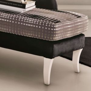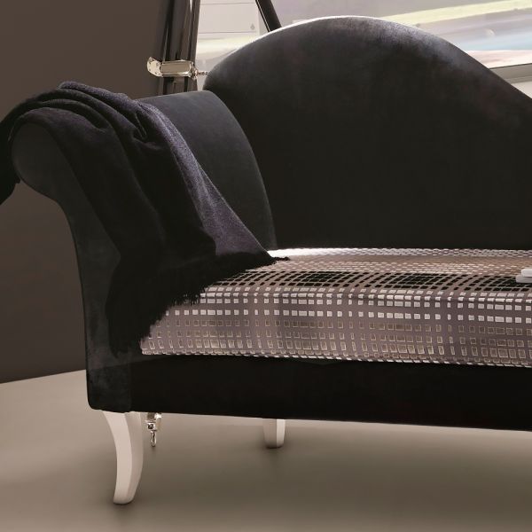 Beautifully made from solid wood and superbly upholstered with a luxury black and patterned velvet fabric.