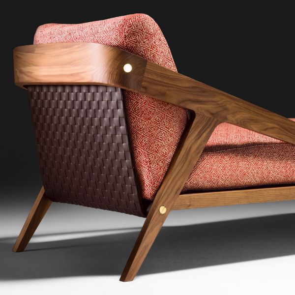 The seat support is produced in the finest brown Italian leather, with the backrest being in a dramatic statement hand woven effect.