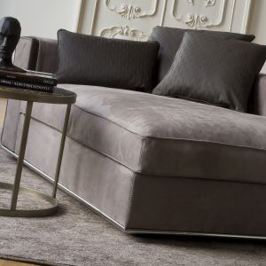 Its solid wood structure is superbly padded and upholstered to the highest industry standards with a modern mink grey luxury fabric.