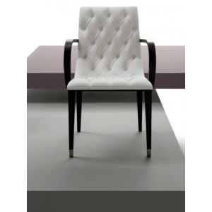 The Exclusive button backed chair shown here in a rich burgundy tweed effect fabric and polished beech wood legs. Made to high standards.