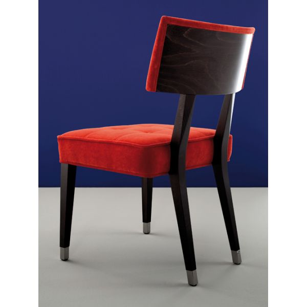 World class Luxurious Red velvet button wenge chair shown here in our vibrant red velvet with a matt finish wenge frame but available to order in various fabrics and frame colours, matt or high gloss lacquer and with customers own fabric.