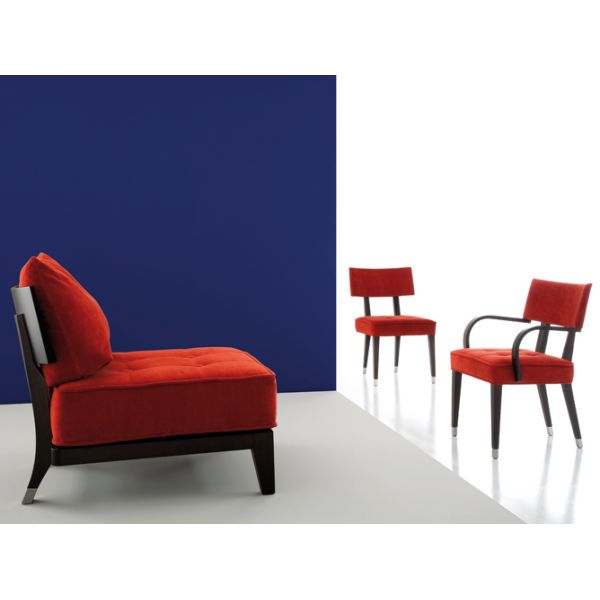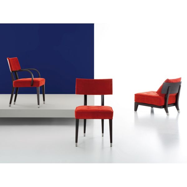 World class Luxurious Red velvet button wenge armchair shown here in our vibrant red velvet with a matt finish wenge frame but available to order in various fabrics and frame colours, matt or high gloss lacquer and with customers own fabric.