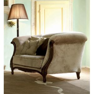 The Venetian button upholstered Italian armchair in an ivory finish with hand painted gold details and button upholstered in a rich velvet fabric. Available to order in alternative fabrics, customers own fabric and finishes.