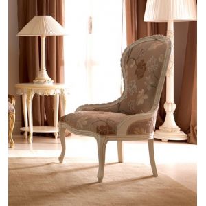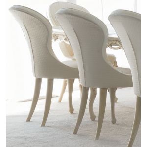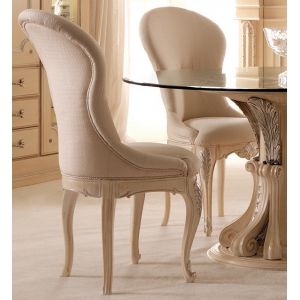 The Exclusive Designer Upholstered Italian Chair with beautiful rose and ribbon detail is shown here in an antique ivory finish with hand painted bleached gold elaborate detailing and upholstered in a rich ivory velvet. Also available to order in differen