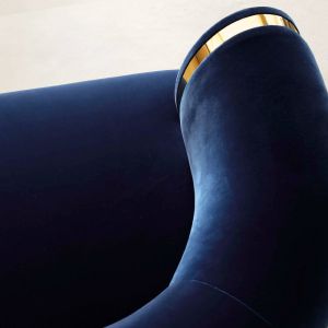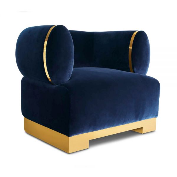 High End Modern Italian Designer Blue Velvet Armchair. This remarkable armchair?offers a particular aesthetic,?delivering a seductively modern style indeed. Superbly made of solid wood and beautifully upholstered to the highest standards for exceptional?c