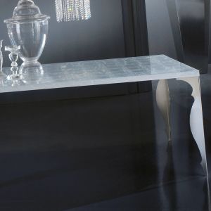 The Italian High End Baroque Silver Leaf Dining Table is a striking table indeed, manufactured to the highest quality by the finest Italian furniture makers. Offering new dimensions in home or smart business interiors this impressive table with a 50 mm re