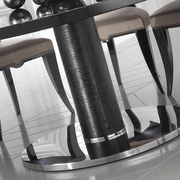 he Designer Leather Round Black Lacquered Dining Table is a gorgeous table that offers outstanding style and comfort indeed. Manufactured to the highest quality by the finest Italian furniture makers indeed. Of notable opulence, not only adding a touch of