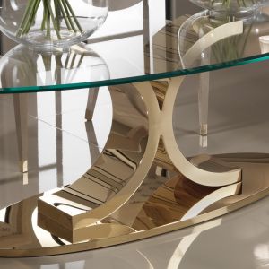 A modern design manufactured to the highest quality by the finest Italian furniture makers. Offering new dimensions in home or business interiors. Providing the most luxurious focus, statement base is dipped in 24 carat gold with an oval bevelled edged 15