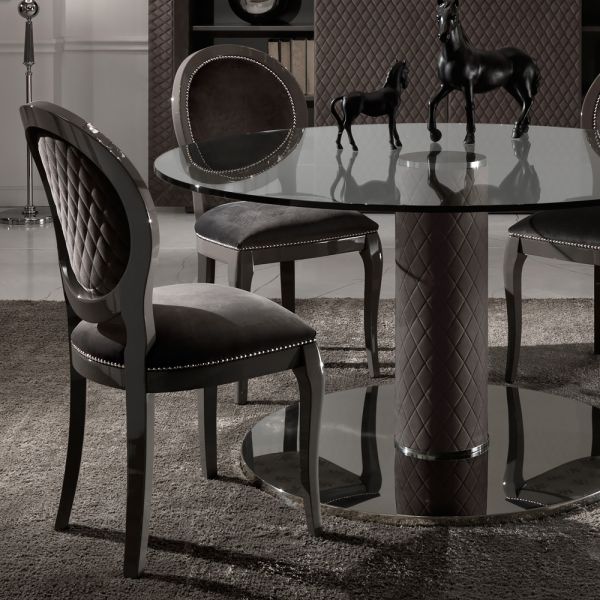 The Italian Nubuck Leather Round Glass Dining Table is a gorgeous dining table that offers outstanding style indeed. Of notable opulence, not only adding a touch of glamour to any setting but also creating a dramatic dining experience. Above all truly per