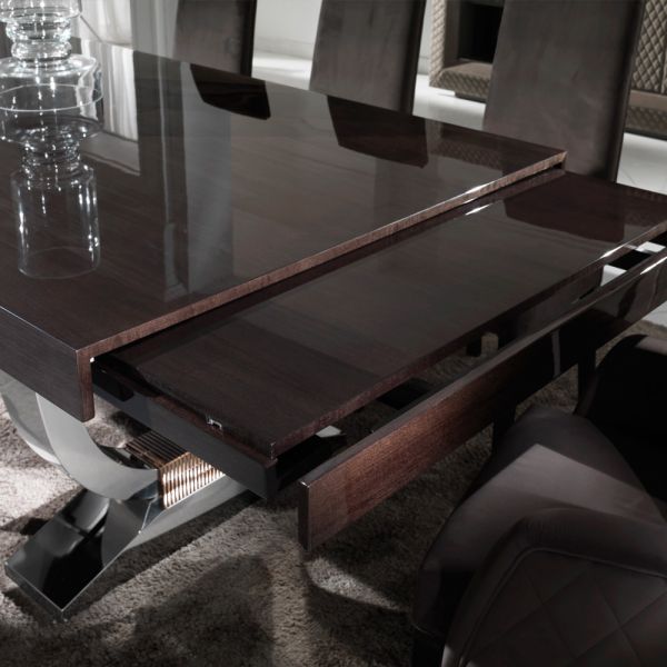 The Large Modern Italian Veneered Extendable Dining Table is a statement of true opulence. For intimate evening suppers this gorgeous dining table offers outstanding style and comfort providing the ultimate sophisticated dining experience indeed. A stylis