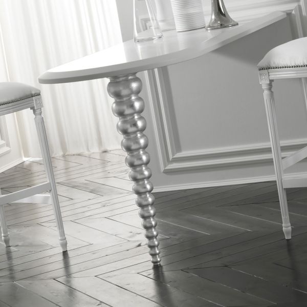 The High End Designer Italian High Gloss Dining Bar, ideal for small spaces still requiring a designer luxurious look. Shown here finished in white gloss with a feature single silver leaf leg.