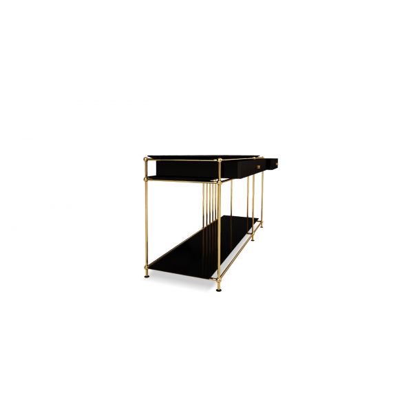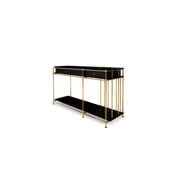Top: Lacquered wood with high gloss varnish , genuine leather Structure and Details: Polished brass
