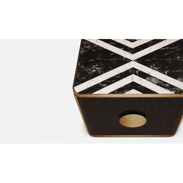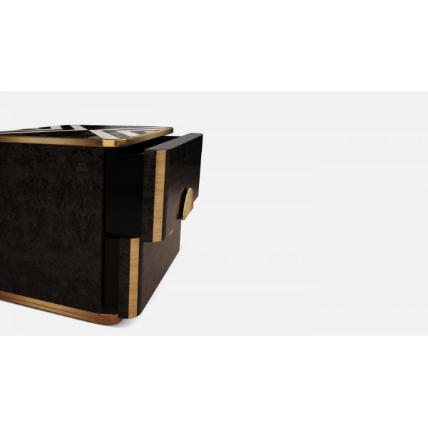 Top: Negro Marquina and Ochiro marble Structure: Black stained bird's eye wood with high gloss varnish Details: Brushed Brass