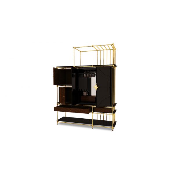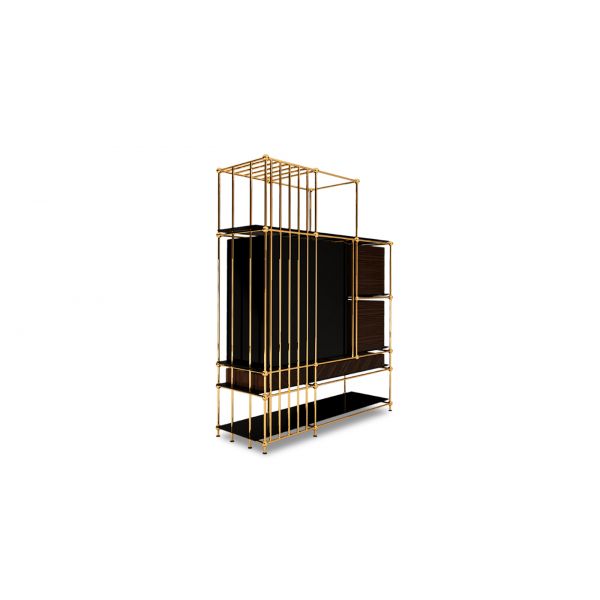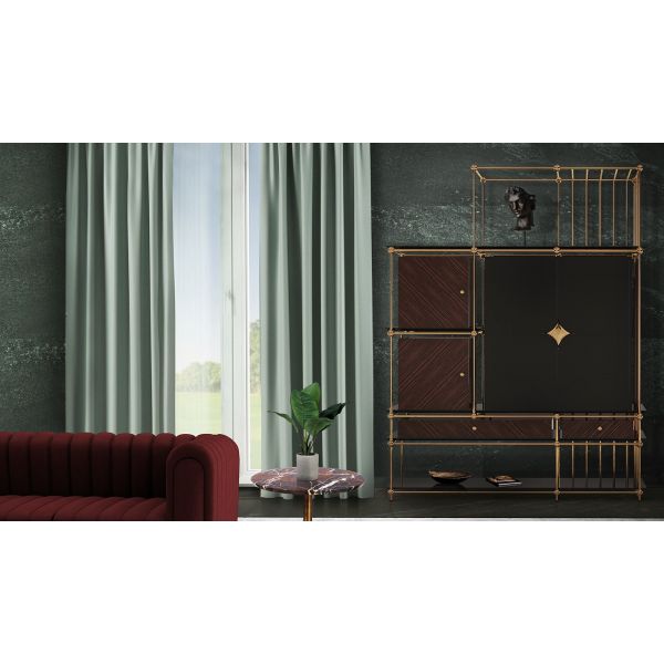 Structure: Iron wood and lacquered wood with high gloss varnish, Polished Brass Drawers: Ironwood with high gloss varnish Details: Polished Brass