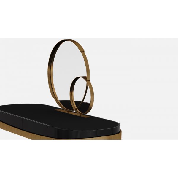Top: Lacquered wood with matte varnish on top and high gloss varnish on the sides Structure and Details: Aged Brushed Brass