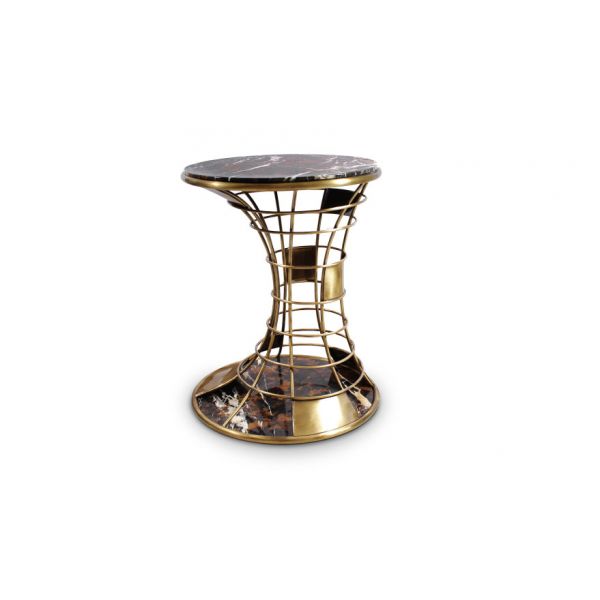 Top and Base: Black and gold marble Structure: Brushed brass