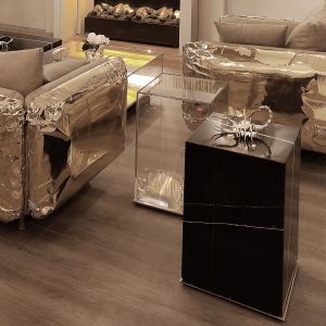 The main material of this piece is marble, conjugate with lacquered black and gold, make it subtle, elegant and contemporary