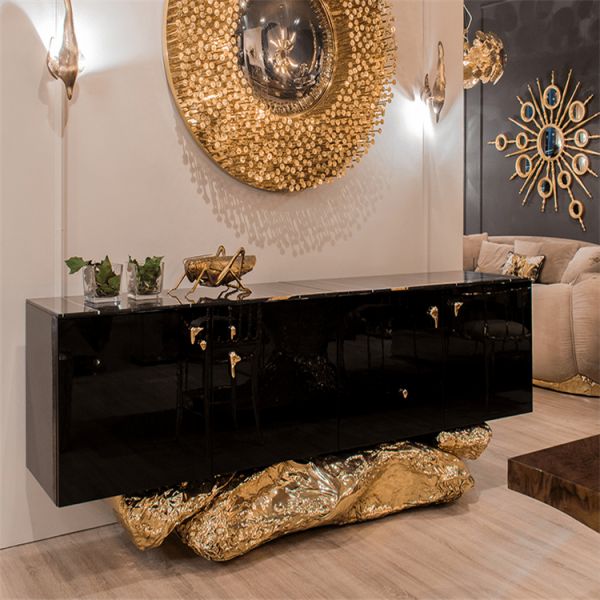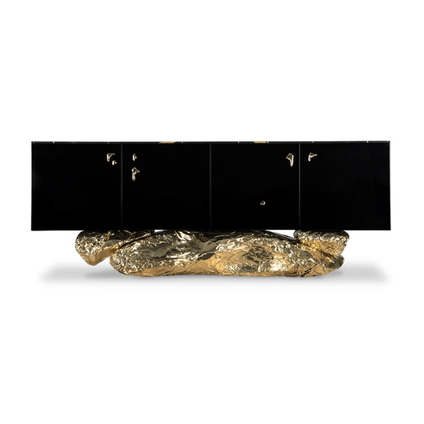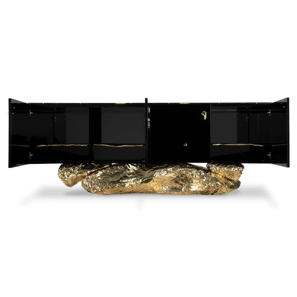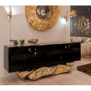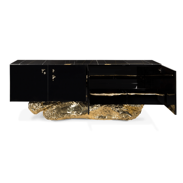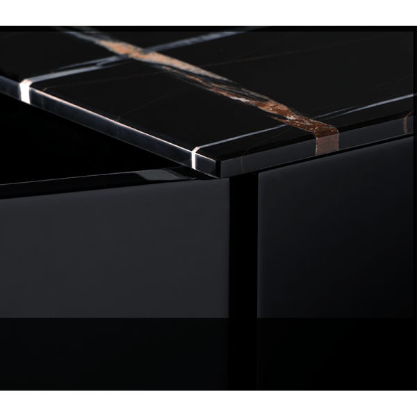 Polished Brass, Casted Brass, High Gloss Black Lacquered Wood, Sahara Noir Marble (Black Marble)