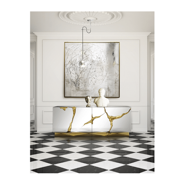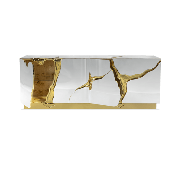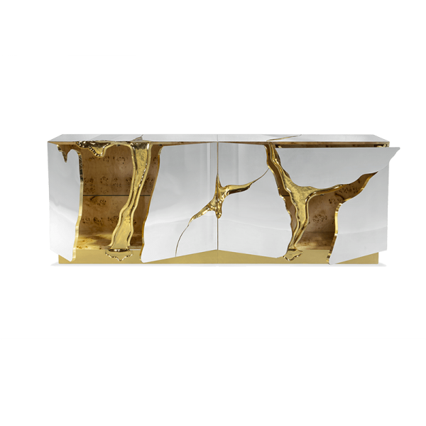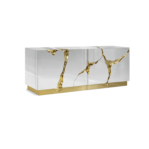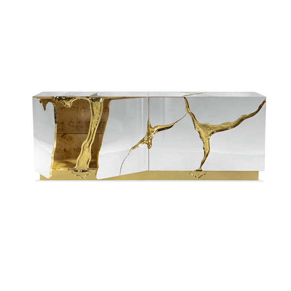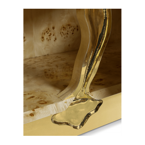 Brass, wood veneer, lacquer, high gloss varnish, glass.