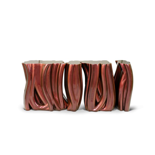 Polished brass, Leather,fabrics,wood.
