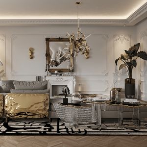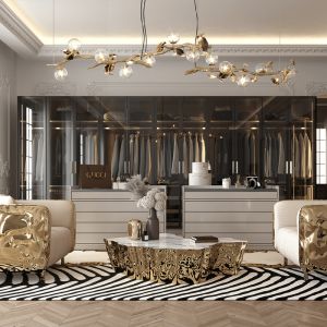Polished brass, Leather,fabrics,wood.