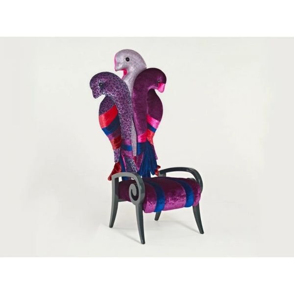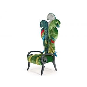 High-back fabric armchair
