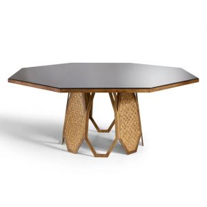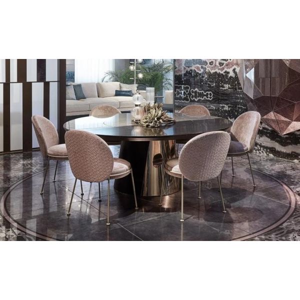 Round table in ebony and metal