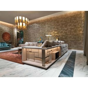 Babylon Rack Living Room Sectional in Beige Leather