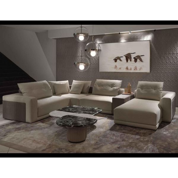 Miller Living Room Sectional in Beige Leather