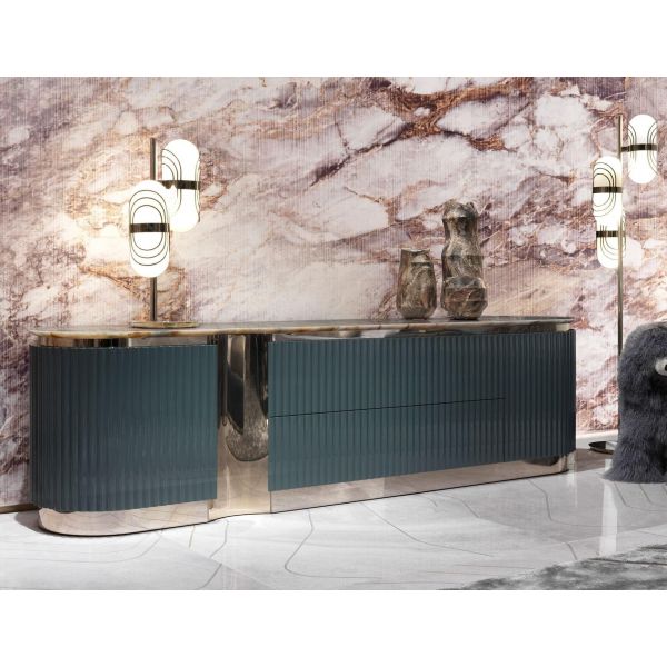 Leonardo Credenza in Blue Lacquered Wood